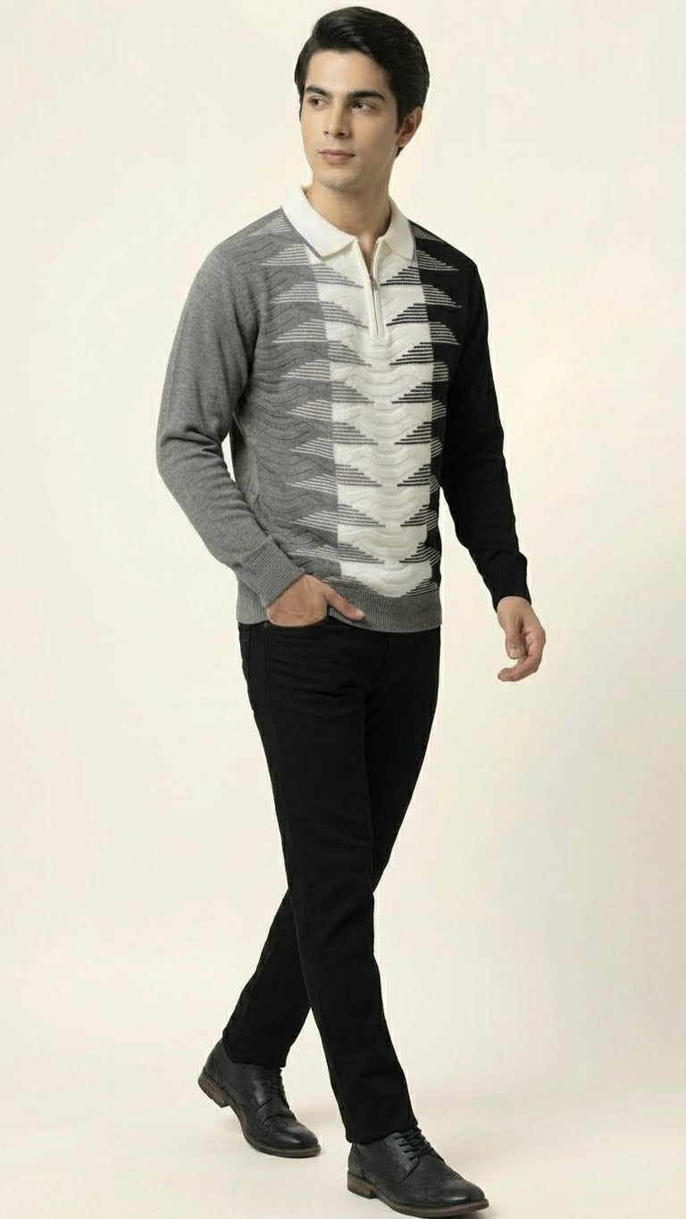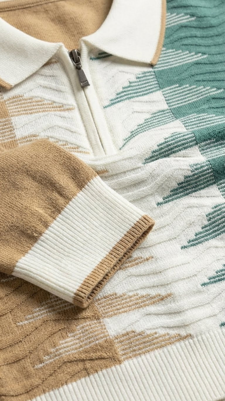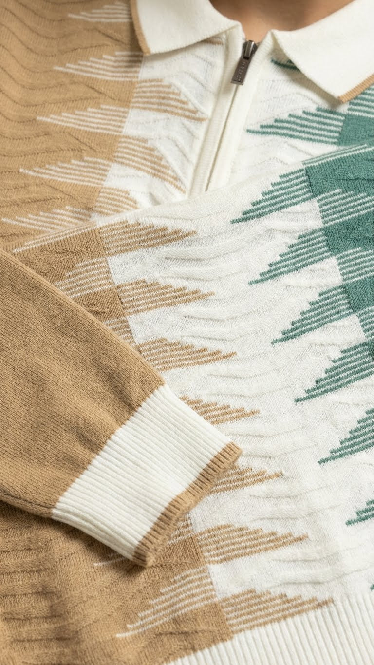 Geometric Wave Knit Polo for Men