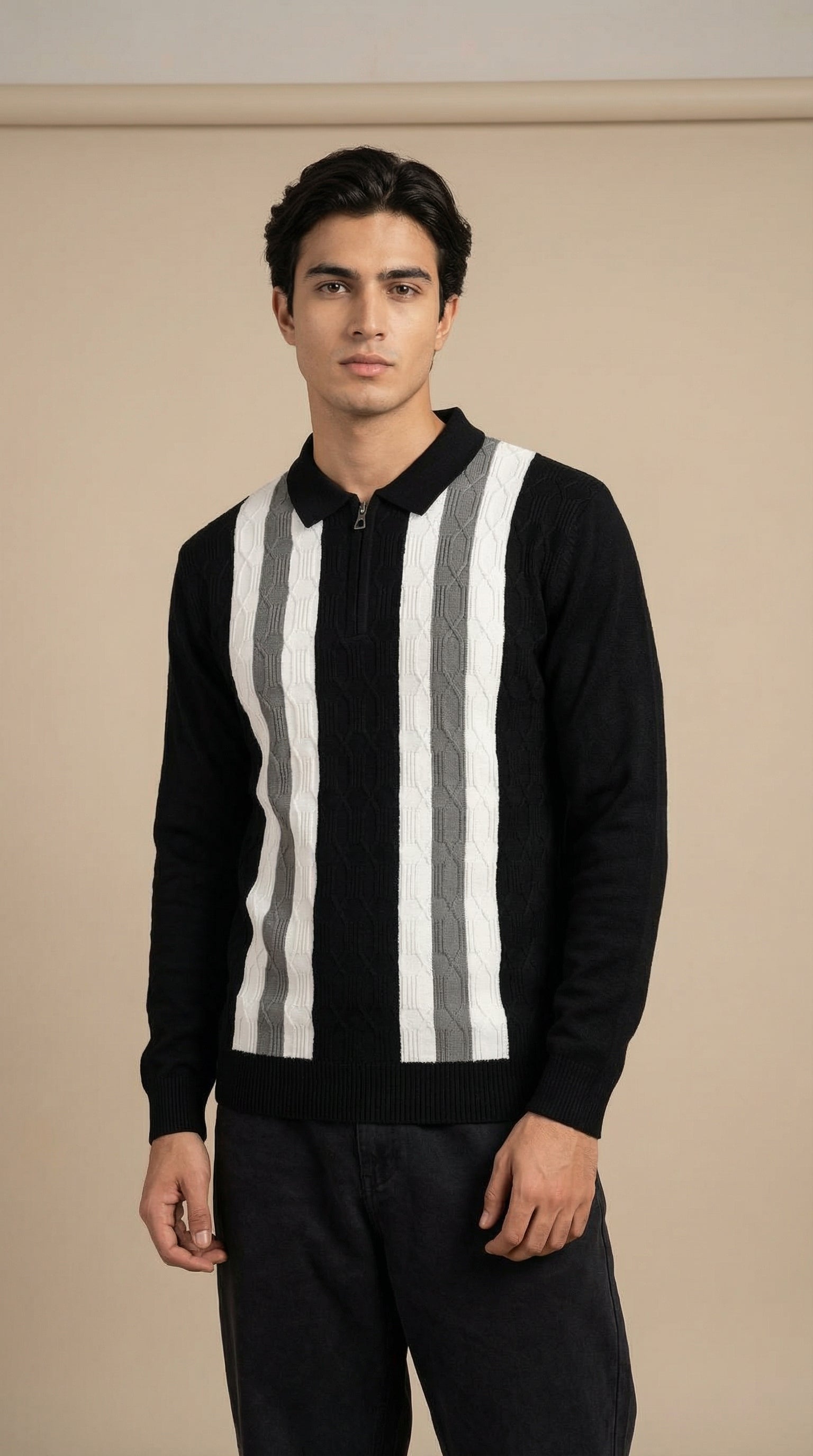 Men’s Vertical Stripe Textured Knit Polo T-Shirt